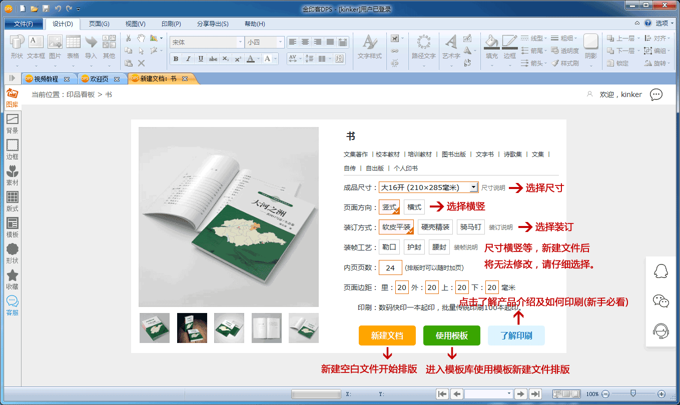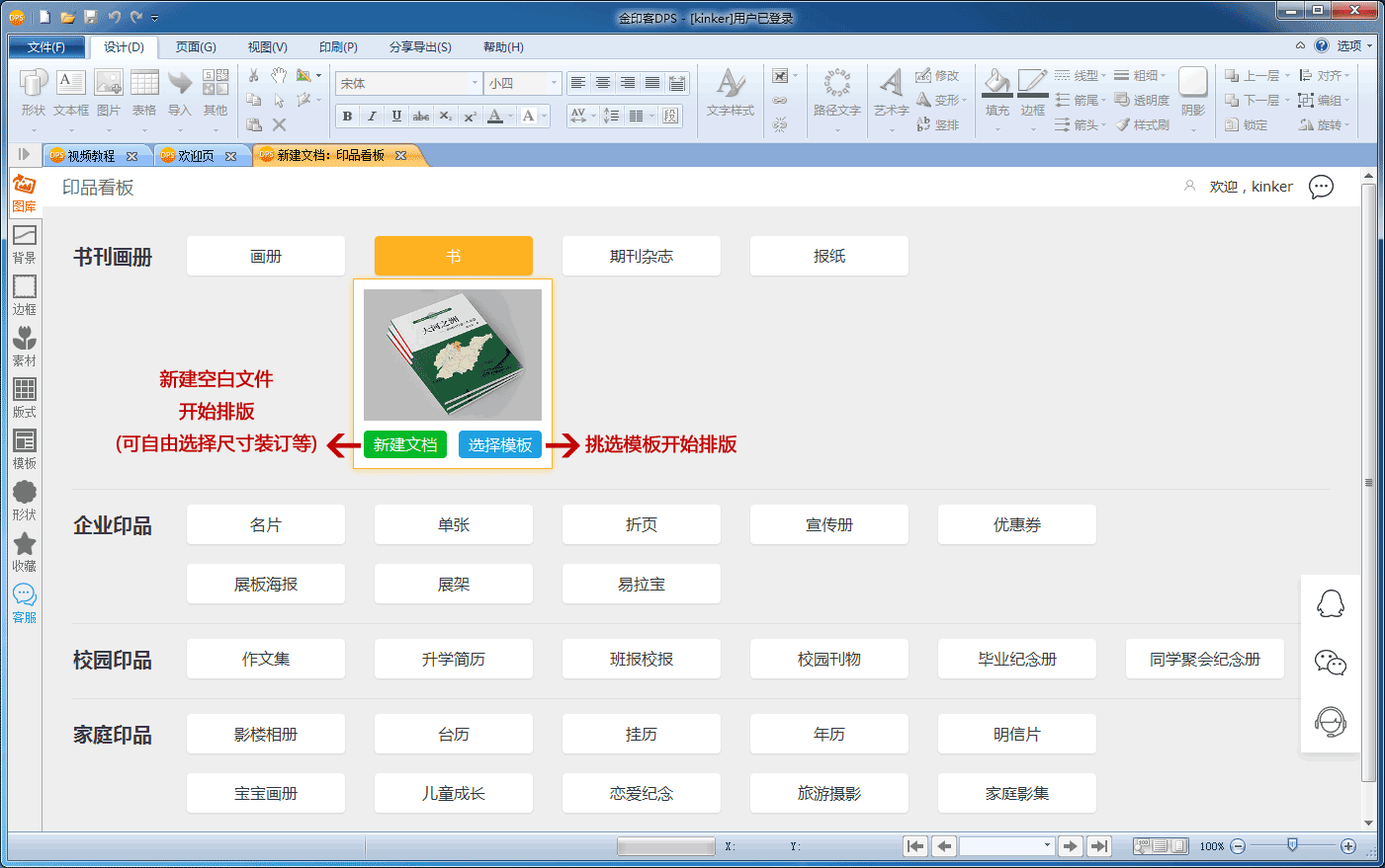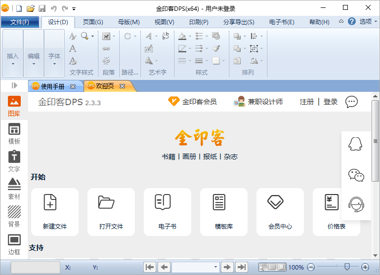 金印客dps软件官方版是一款专注于网络印刷C to B服务平台,以大众(网络)用户为对象,集合专业性、趣味性和易操作性为一体的智能化设计排版印刷软件,也是目前唯一一款实现了专业级书刊画册,从设计排版、到下单印刷与电子商务完美结合的软件,同时以印刷产品为导向创建排版文件,很好地克服了印刷专业知识的障碍,顺利快速进入设计排版状态。