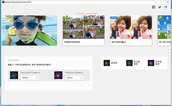 2、在主屏幕上,单击管理器以启动Elements Organizer工作区