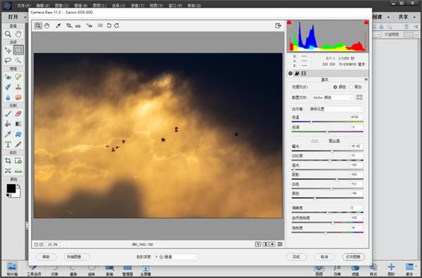 如图示,在CR插件中打开照片并调整: