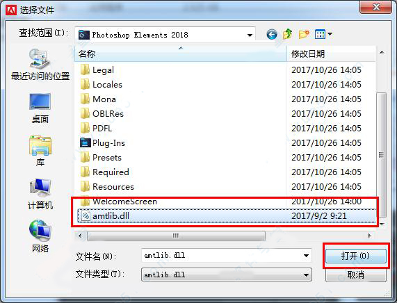 8、找到软件安装目录下载“amtlib.dll”补丁,点击“打开”即可激活软件;