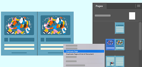 现在可在 InDesign 中重复页面或跨页,以便直接在选择后放置它们。还可选择将重复的页面或跨页放在文档的末尾。