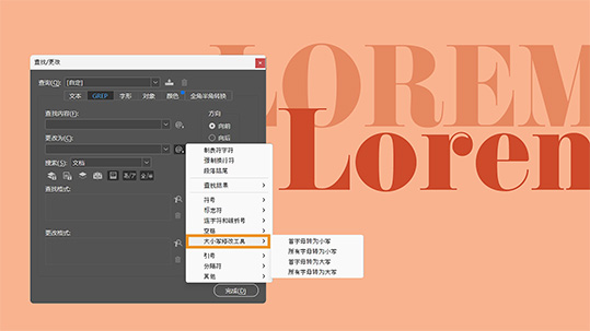 只需点击几下即可轻松更改文本大小写,确保设计的一致性。此功能可简化文本编辑,从而节省时间和精力。通过从查找/更改面板中的文本或 GREP 选项卡快速调整文本大小写,增强您的工作流程。