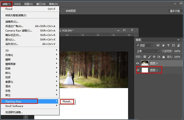 3、打开滤镜-Flaming Pear-Flood。