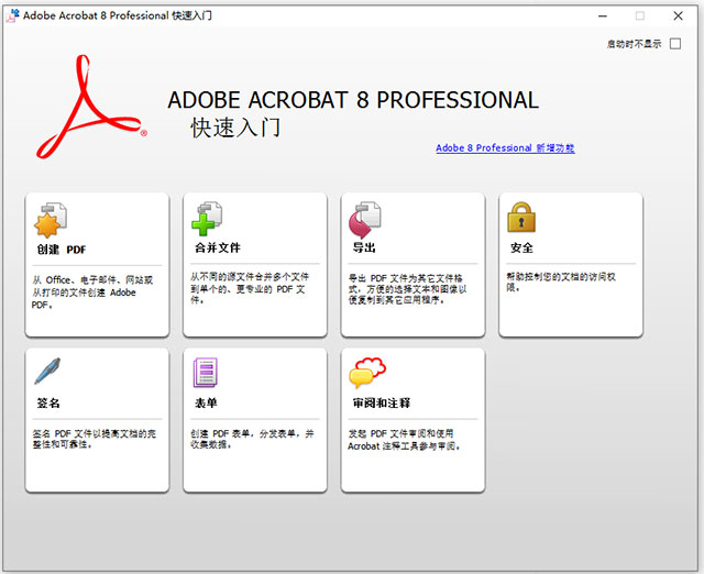 PDF格式是一种全球通用的电子文档格式,各种演示文档,产品说明书都是pdf文件,故小编这里为广大网友提供adobe acrobat 8.0中文版下载,并且是专业版本,包含了注册机和安装教程,可以完美成功激活软件,让用户可以更好的处理pdf文档。Adobe Acrobat 8.0 professional虽然不是最新版本,但非常的经典,能够比以往更快、更轻松地创建、签署和共享PDF。用户可以将扫描件、图像、网页和Microsoft Office文件转换为您可以处理的PDF文件;也可以直接对pdf文件进行编辑,包括添加文本、插入图像并更新表格等,让用户可以获取可随时随地工作的完整pdf解决方案。