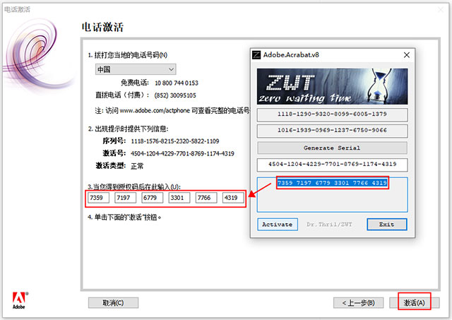 8、将激活码复制到软件激活码填写框中,点击激活,激活成功。