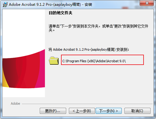 4、默认安装目录【C:\Program Files (x86)\Adobe\Acrobat 9.0\】,依提示继续安装;