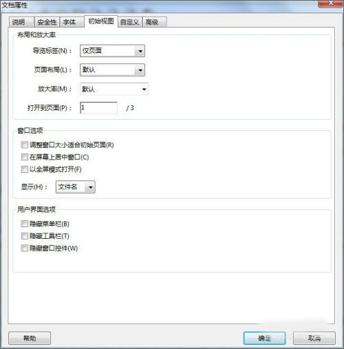 6、初始视图,就是我们打开pdf文档的时候,看到的初始界面,这个我们可以自行设置,记得一定要点击保存哦;
