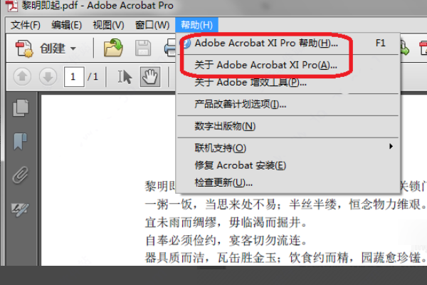 1、如果是使用Adobe reader查看PDF文档,则不能修改文字。如果是使用Adobe Acrobat Pro查看PDF文档则可以修改文字,我们可以查看可以通过“帮助”查看你的软件是Adobe reader还是Adobe Acrobat Pro。