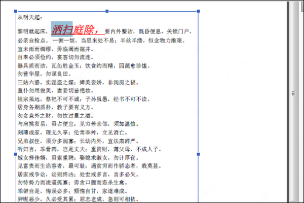 5、我们将“黎明即起”改成了“黎明就起床”。然后将调整了”洒扫庭除“的字体大小、颜色、加粗、下划线等等,至此,我们完成了Adobe Acrobat Pro中PDF文件中的文字的修改。