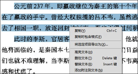 6、识别完成后,仍然停留在当前页面,不同的是,当再次选择其中的文本点击右键后,就能看到熟悉的复制,也可以选择“将选定项目导出为…”,如下图所示: