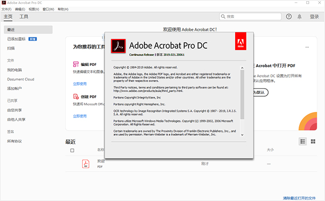 acrobat dc 2019直装版是acrobat pro dc系列软件的新版本,全名称叫做acrobat pro dc 2019,该软件是一款综合性的PDF编辑和阅读软件,能够支持随时随地开展工作的完整PDF解决方案。新版本进行了重新设计,可以在桌面、Web和移动设备(包括启用触屏的设备)上提供简单一致的用户体验。比如acrobat2019利用全局签名工具对文档进行签名时,您只需单击一下即可快速访问各种签名。支持在PDF包导览窗格中拖放文件,开启了创建、合并、导出和比较等审阅文档的工具。支持发起人或发件人可以复制共享链接或审阅链接等等,能够为用户提供更便捷的操作体验。