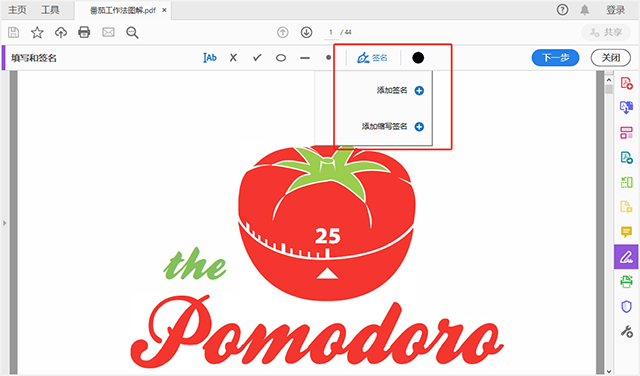 现在,“签名”工具始终显示在工具栏中,便于您轻松访问。它提供的“一键单击”式访问功能,可允许您填写并签名文档。