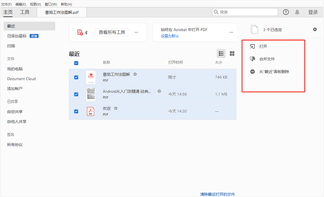 b、合并文件:使用上下文窗格中的“合并文件”选项,可直接合并多个文件,无需打开工具然后再选择需要合并的文件。