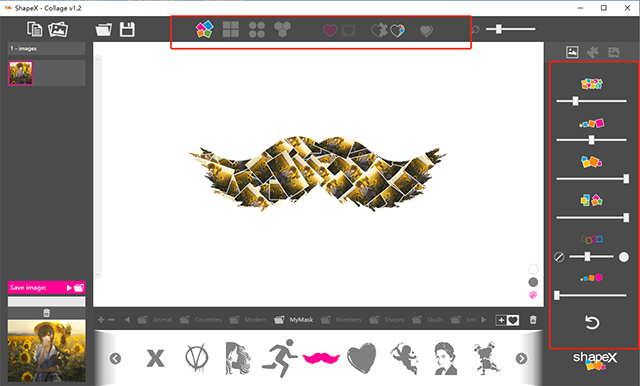 ShapeX是一款专业的照片拼贴软件,这款软件可以制作动物,数字,单词和许多其他物体形状的拼贴画等,而且也可以尝试更改图像的数量,大小和方向以及它们之间和周围的边界。另外,ShapeX可以将拼贴保存为JPG或PNG图像,以便进行打印或社交分享。 简单,快速,易于使用的界面ShapeX的图形用户界面完全不言自明,给人以直观的操作感受,有需求的用户可在此点击下载!