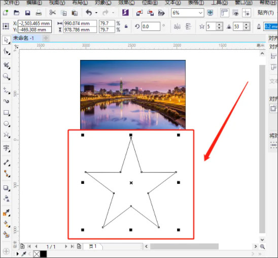 3、在页面空白处拖出一个五角星形状(或者其他形状)。