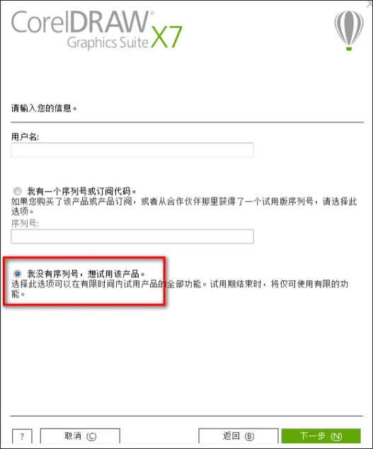 2、在安装过程,软件会提示你输入序列号,此时我们选择“我没有序列号,想试用该产品”。