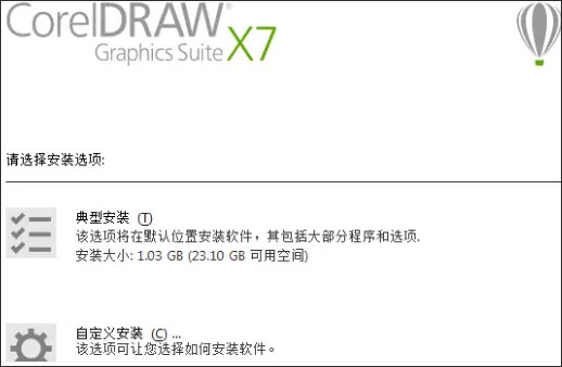 3、安装选择项时有必要要注意一下,如果希望更换安装路径请选择自定义安装,否则典型安装即可。典型安装时软件默认安装在C:\Program Files\Corel下。