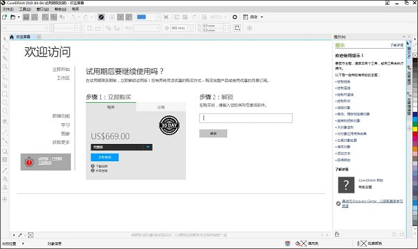 5、或者您也可以在试用期间或试用结束后的时间,选择立即购买来激活您的CorelDRAW 2018。