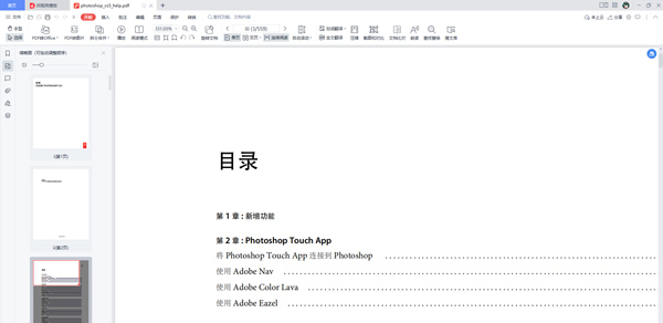 本款photoshop cs5官方教程pdf版是小编从Adobe官方下载的,不但包括了使用教程,还包括了photoshop cs5故障诊断说明,可以方便设计人员查阅,适用于新手和老手使用。photoshop cs5教程总共包括22个章节,第1章新增功能,第2章photoshop touch app,第3章工作区,第4章打开和导入图像,第5章颜色基础,第6章颜色和色调调整,更多介绍可以参考下文操作,欢迎免费下载收藏。