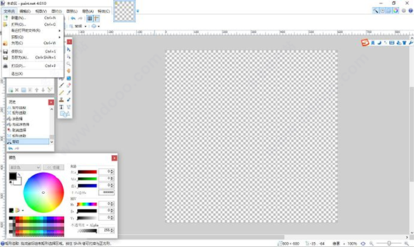 首先我们看到的是文件菜单。文件菜单中有的内容没有什么需要解释的。比较重要的一点是在制作材质时,在保存贴图之前务必记得合并所有图层,否则文件将会以pdn格式保存,游戏会无法读取。