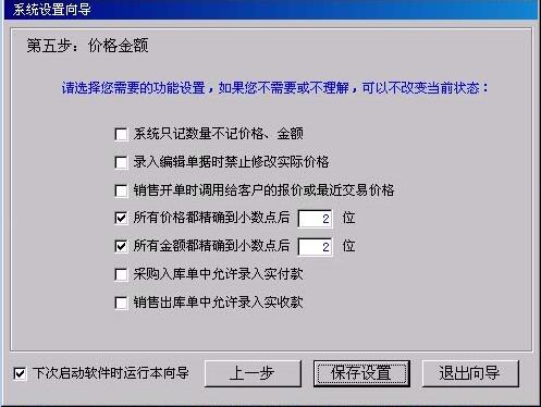5、这是系统设置的最后一步,勾选系统只记数量不记价格、金额等选项,并保存设置即可正式进入界面。