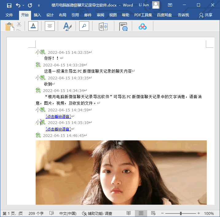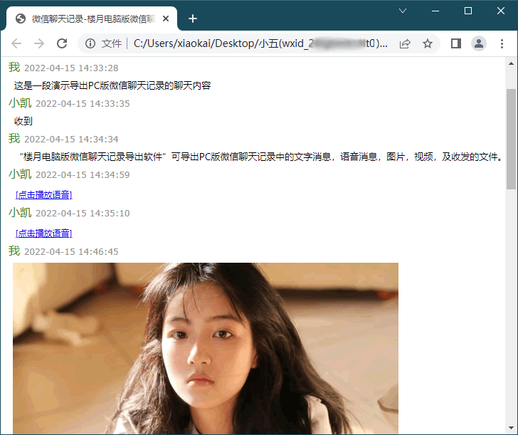 说明:导出的图片,语音,视频文件均以数字序号命名进行了排序,并且文件名中还包括该消息收发的时间。