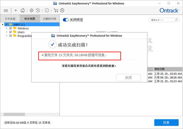 经过深度扫描,共检索出15个文件,共计56.18MB;