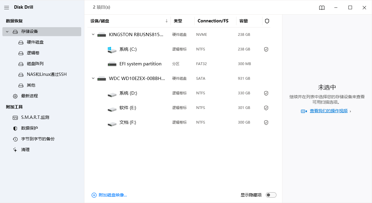 恢复系统磁盘和外部设备上丢失的数据,包括所有类型的存储卡和usb驱动器,如果您可以将其连接到计算机,Disk Drill可以找到丢失的数据。