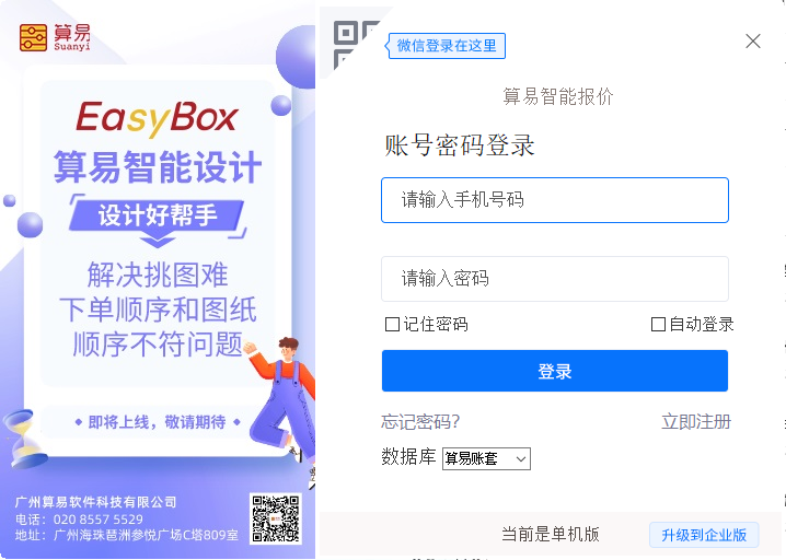 算易报价官方版是由广州算易软件科技有限公司针对电气行业量身定做的集产品报价、智能设计、快速识别于一体的应用软件。充分学习了一些大型企业的商务管理理念及3D图形技术,使用灵活,操作简单,能够独立满足电气行业产品报价及元件识别开展的各种活动需求,高效、实用!