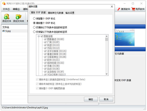 1、可以选择删除或保留整个 EXIF 元数据,也可以指定仅选择删除 EXIF 数据中某些特定的标签;