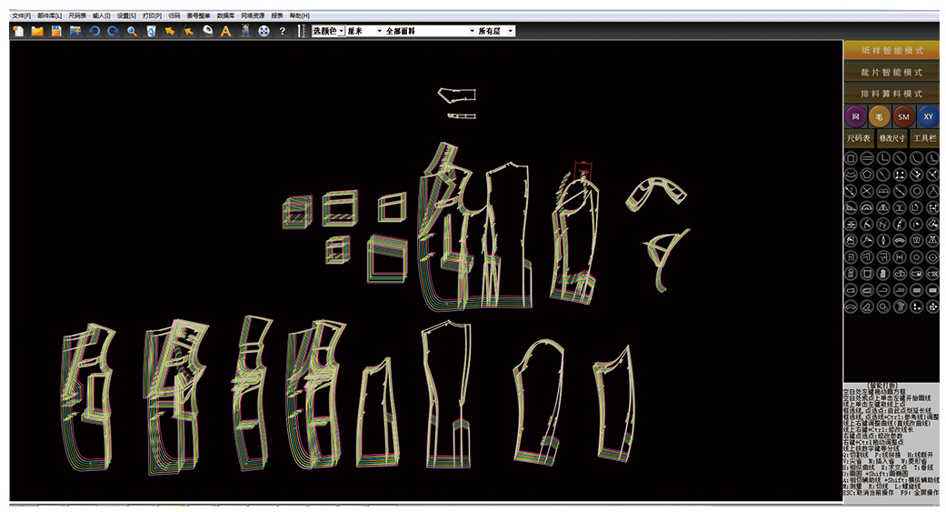 可以将不同款式、不同规格混合排料,并可以设置每个规格及裁片的数量、方向以及对称等。系统根据设置的方式自动计算最佳排料方案,并在规定的时间内完成排料工作。