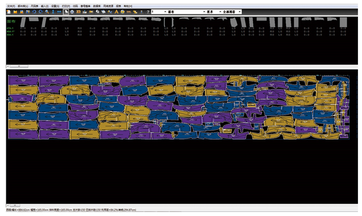 数量及颜色和规格较多的订单,可以采用自动分床的方式,通过设置排料长度、层数、估算利用率等,通过系统计算自动分床,并按照分床的方式快速完成全部排料,这种排料方式可以有效利用非工作时间,完成批量的排料工作。