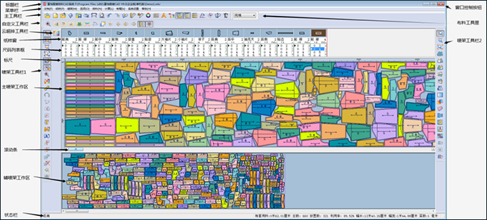 8、可手动排料、超级排料、排队超排,包含避段差,边差,捆绑,避瑕疵等排料方式, 节省时间,提高工作效率。能导入和导出HPGL格式的绘图文件及裁床CUT格式文件,进行重新排料。软件可以连接绘图仪、裁床、A4打印机,1:1实际打印唛架图,输出PDF文件打印小样图。