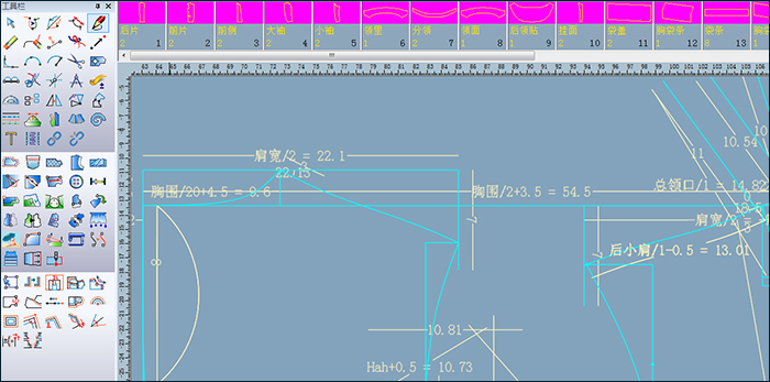 五。多种特殊放码工具:比例放码、辅助线放码、辅助线平行放码、圆弧放码、定型等幅高放码等放码工具,更便捷地协助纸样师放码,为繁琐的工作节省了时间。