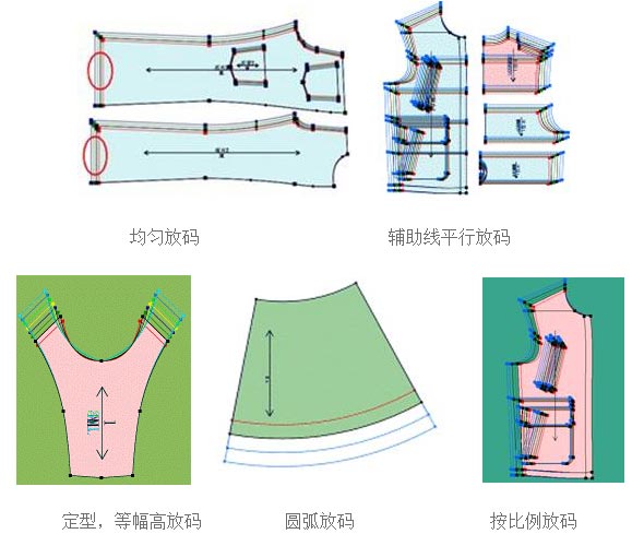 ◎多种放码方式:点放码、线放码、整体放码、比例放码、方向键放码,可根据自己的使用习惯进行选择;