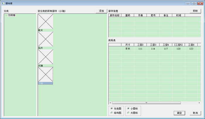 5、部件库:袖子、领子、口袋等部件保存在部件库中,随时提取调用。