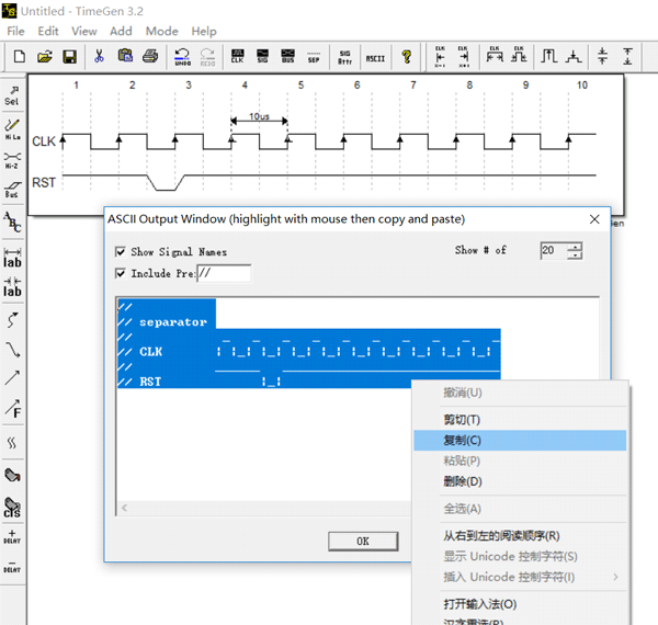 在画布上绘制需要的信号、波形、信号名称和文本框