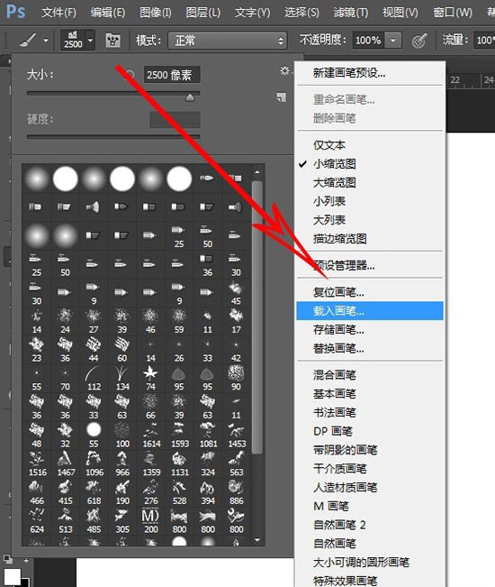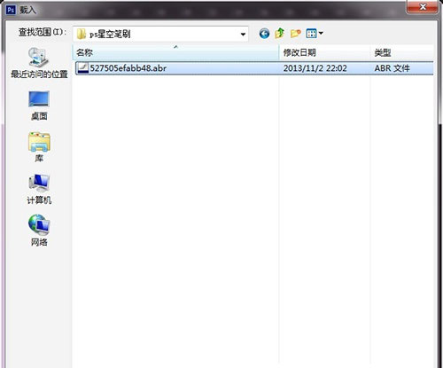 出现对话框,选择已下载云彩笔刷的路径,如图: