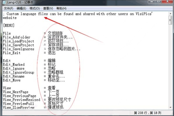 3、使用中文信息替换Lang-CUS.ini中的内容,并保存