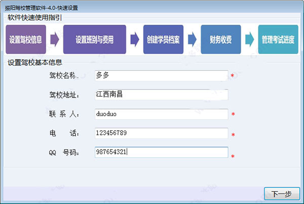 1、打开软件,对驾校基本信息进行填写。