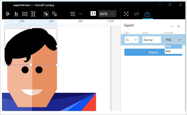 5、编辑完成后,就需要导出了。借助这款工具,你可以将选中的元素保存为PNG或SVG格式的图片,或者直接导出整个文件;