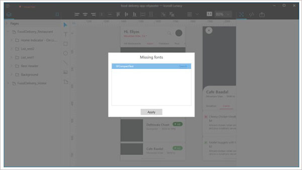 3、在Windows上查看Sketch文件,可能会遇到的另一大问题就是字体了。而Lunacy则会在左上角提示当前所缺失的字体,只需一步点击,就能使用Google搜索字体下载链接,十分贴心;