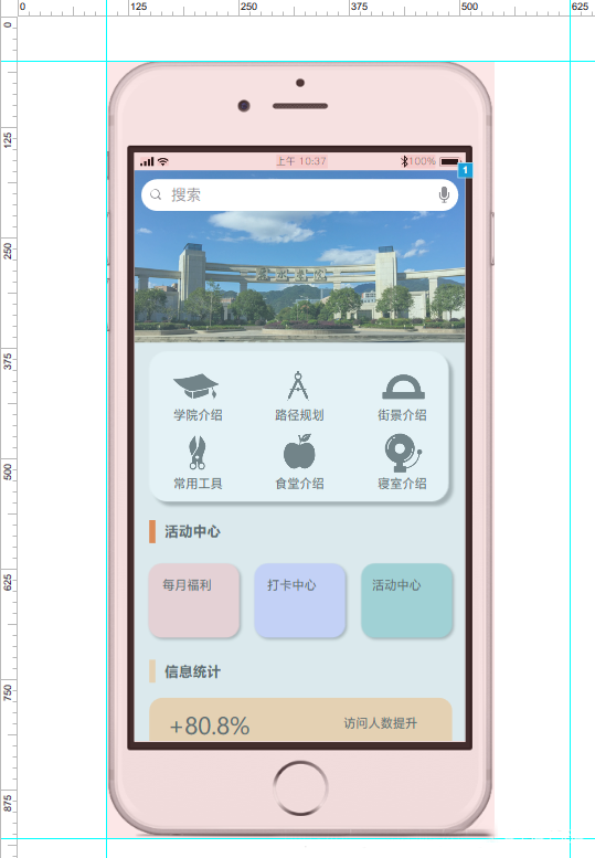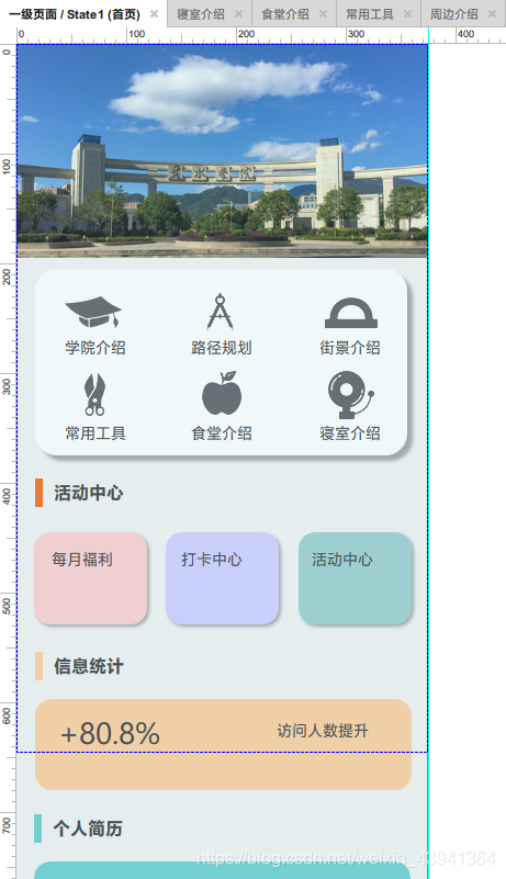 3、下面打开一级页面的 state1 ,拖入一个新的动态面板,大小应该是和一级页面宽一样,这里是 375*1120 。
