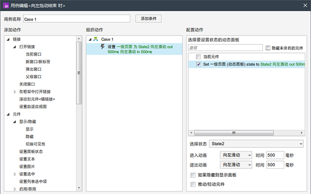 4、生活中咱们的手机左右滑动一般是切换页面,而不是拖动手机屏幕,所以这里不需要两个面板,只需要多个状态。