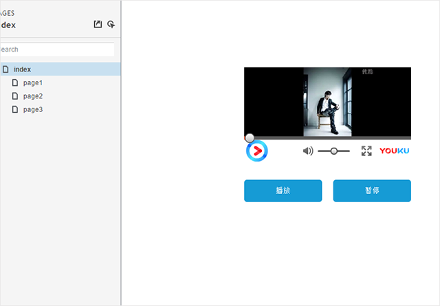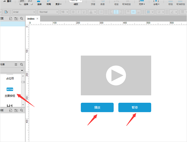 5、拖动2个主要按钮到内联框架下,按钮名称分别写上“播放”,“暂停”,注意:这2个按钮没任何作用,只是装饰。