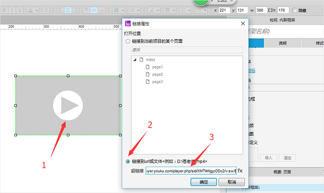 4、双击内联框架,在弹出的页面中,选择链接到url或文件,粘贴(Ctrl + V)在上个步骤复制的flash地址。