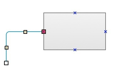 6)将鼠标指针放在任何一个点上,都会出现一个红色方框的效果,这就说明可以连接了