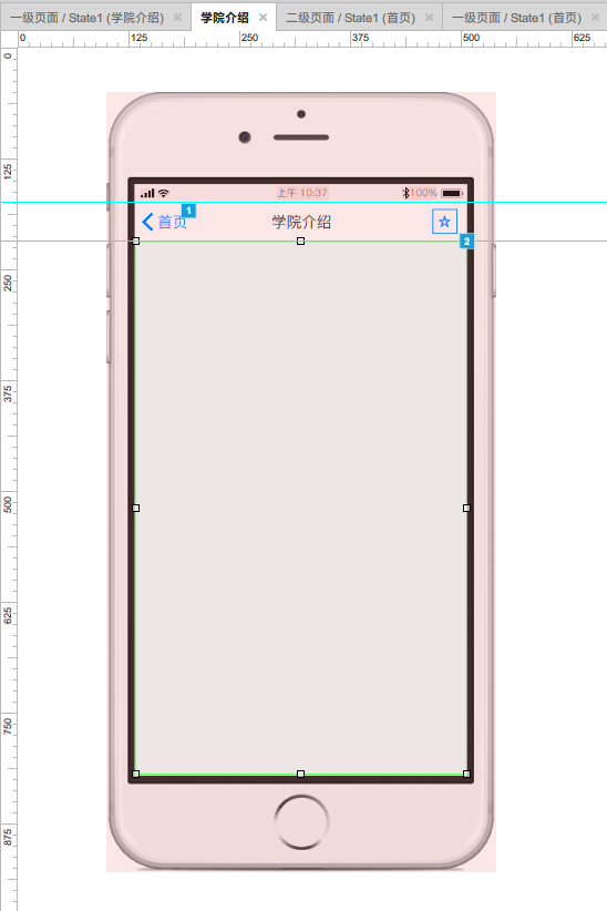 2、然后拖入一个动态面板 375*646 ,命名为一级页面,这是我们给外界展示的大小。
