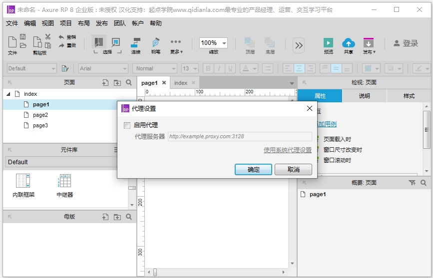 在页面导航面板中,通过拖拉页面或点击工具栏上的排序按钮,可以上下移动页面的位置和重新组织页面的层次。打开页面进行设计在页面导航面板中,鼠标双击页面将会在线框面板中打开页面以进行线框图设计。