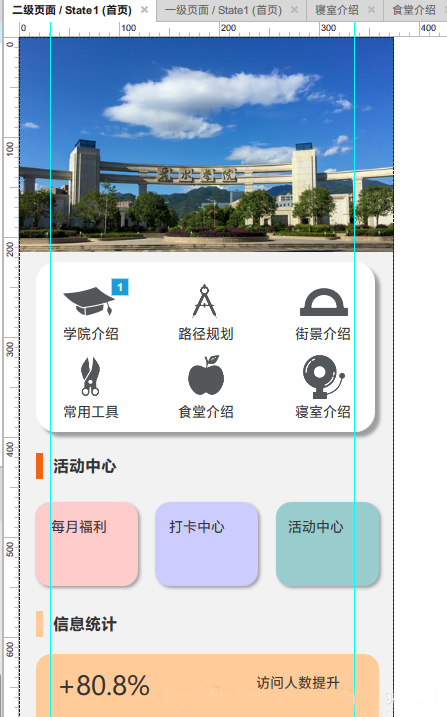 4、最后再打开二级页面的 state1, 添加进去内容就可以了。